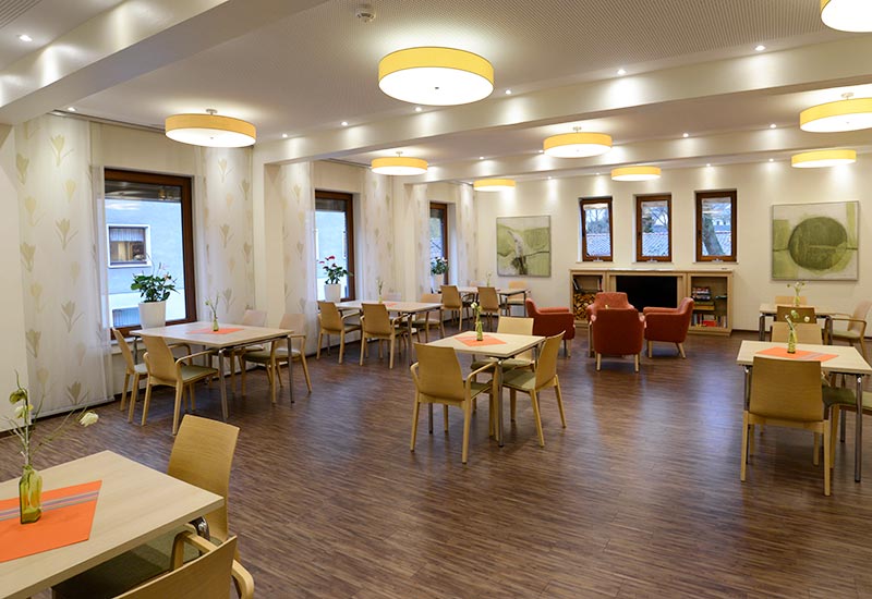 Die öffentlichen Räume wie Kapelle, Cafeteria, Wintergarten, Film- und Fortbildungsraum, Terrassen, Atrien und Wohlfühlbäder laden unsere Bewohnerinnen und Bewohner zur Nutzung ein. Selbstverständlich befindet sich auch ein Friseur in unserem Haus, und ein »Rollender Verkaufswagen« stellt die Versorgung mit süßen Kleinigkeiten und anderen Artikeln des täglichen Bedarfs sicher.